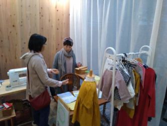 子供服を中心とした作品づくりを手がけています。麻福で手がける麻生地も展示。お好きな生地での作品づくりをご相談いただけます。