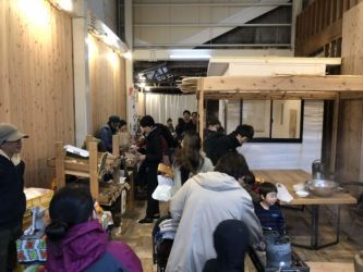 2/19 倉庫中央にグランピング風のエリアを制作中です。直径4mのテントを設営し、イートインコーナー 兼 子供向けの企画開催を予定しています。